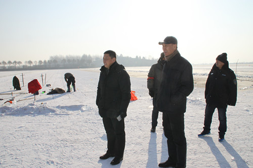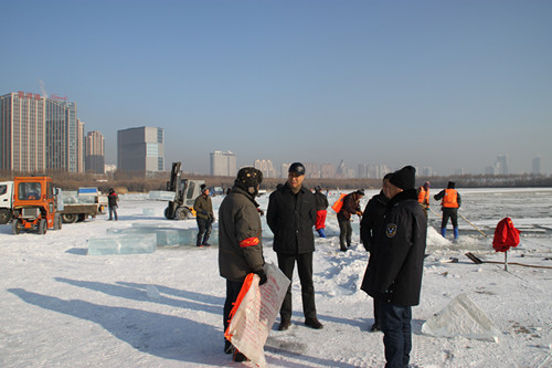 12月7日,市水政监察局局长景才带队深入采冰现场对采冰单位审批手续、安全措施落实等相关内容进行了检查,并要求采冰现场负责人要牢固树立以人为本安全理念,切实提升安全生产防范意识,确保实现采冰进度与安全双赢目标。通过检查了解到,目前已经开始采冰作业的施工承包方为哈尔滨市冰雪大世界股份有限公司、哈尔滨万达城投资有限公司和哈尔滨市冰灯办,三家单位采冰手续均齐全,有正式批件备查,未发现超范围采冰现象。