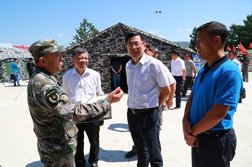 马立局长与抢险部队领导协商防汛抢险工作.JPG